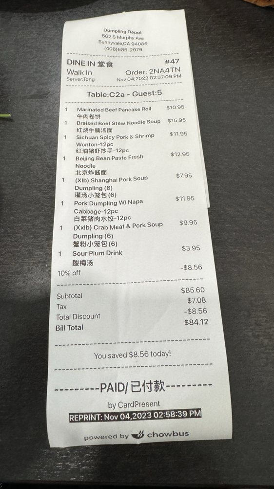 Introducing Dumpling Depot, a casual restaurant in Sunnyvale, CA, offering a variety of dim sum and soup options. Known for their Shanghai Soup Dumplings and Crab Meat & Pork Soup Dumplings, filled with flavorful broth and tender meat. Customers rave about the authentic Asian flavors and reasonable prices. The Marinated Beef Pancake Roll and Wonton Soup are also popular choices. The cozy space may be a bit cramped, but the quality of the food makes up for it. If you're a fan of dumplings, this is the place to go for a satisfying meal. Don't miss out on their honey citron tea and other drink options to wash down those delicious dumplings. With options for takeout and delivery, Dumpling Depot is a must-visit spot for dumpling lovers in the area.